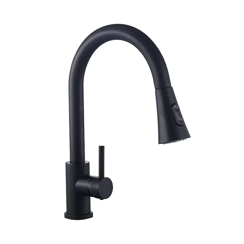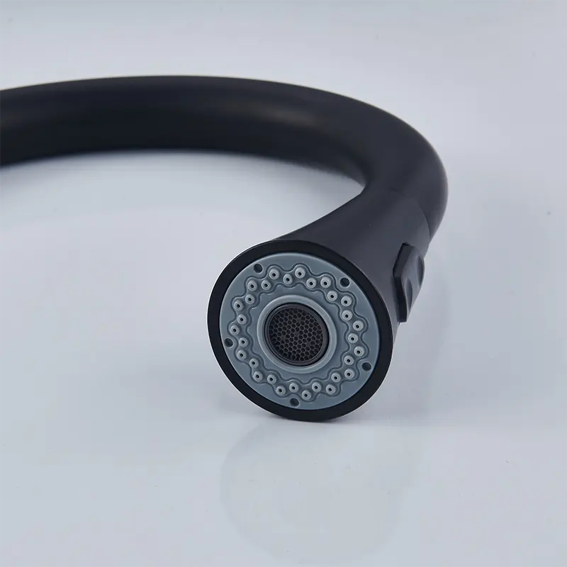 En sort udtrækkende køkkenhane kan forbedre den moderne og avancerede fornemmelse af køkkenet, især velegnet til parring med engelske dræn, dybe skabe eller industrielle design, hvilket gør det visuelt mere forenet.