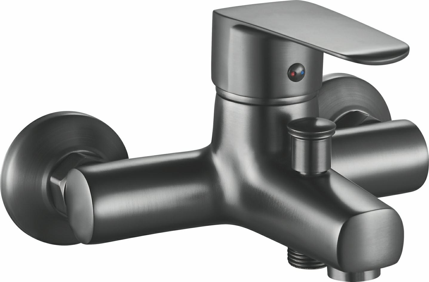 Dette er en Gunmetal grå badekarhane produceret af Haogeer i Kina, installeret på badeværelsesvæggen, som kan justere vandtemperaturens flowhastighed. Hoveddelen er en vandret rørformet struktur, og overfladen er en slidstærk og korrosionsbestandig gunmetal grå belægning, som er kompatibel med moderne badeværelse.